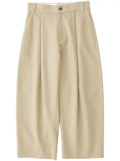 beige cotton zip fly fastening belt loops pleat detailing two diagonal pockets to the sides two rear patch pockets high-waisted wide leg