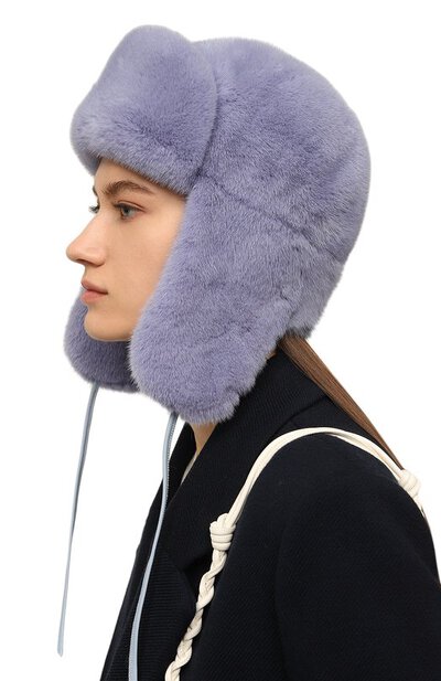 Мастера марки использовали для изготовления сиреневой шапки-ушанки мягкий пушистый мех норки, который согревает даже в сильные морозы. Шкурки аккуратно подобрали по длине и густоте ворса, чтобы фактура получилась идеально ровной. Материал эффектно переливается в лучах света, придавая цвету особенную глубину.