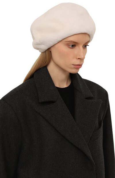 На первый взгляд берет молочного цвета выглядит так, будто его сшили из нежного бархата. Сходство создает особенно густой плотный мех стриженой норки, которую использовали для изготовления модели. Аксессуар скроили так, чтобы он не сминал прическу.
