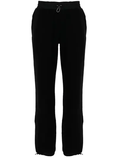 black fleece texture drawstring waist straight leg two side slit pockets drawstring cuffs fleece lining