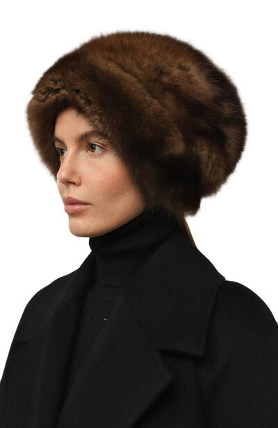 Шапка получилась исключительно теплой, но при этом почти невесомой. Такой ее делает пушистый соболий мех тщательной, но максимально бережной выделки. Шкурки кропотливо подбирали друг к другу, ориентируясь на густоту и оттенок, поэтому кажется, что аксессуар выполнили из цельного куска. Внутри есть фирменный подклад, сохраняющий прическу.