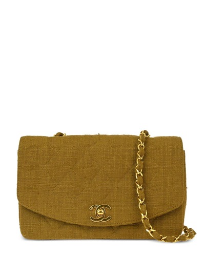 circa 1992 butterscotch brown linen/flax diamond quilting signature interlocking CC turn-lock fastening fabric and chain-link shoulder strap foldover top main compartment internal zip-fastening pocket internal slip pocket full lining gold-tone hardware Serial Number:2729762 This item contains at least 50% materials which are certified or widely recognised as having a lower environmental impact through production and/or manufacturing processes that reduce water consumption and the use of harmful chemicals, or re-use by-products of the production process. This item comes with an original Chanel authenticity card. Condition: GOOD. This previously owned and used item is in good condition with minimal signs of use. This may include fading of material or plating and scratches. Purchasing this item continues its narrative and reduces the environmental impact by avoiding the use of new resources needed to make the product from scratch, such as water, materials and electricity, and avoiding additional manufacturing impact. Learn more about what makes a product Conscious on our Conscious Criteria page