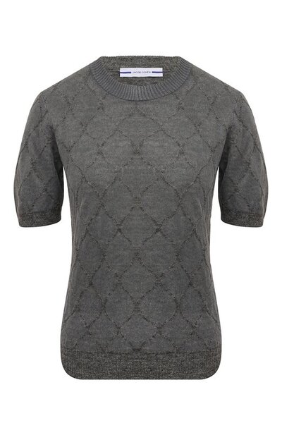 Пуловер с короткими рукавами и круглым вырезом связан из тонкой смешанной пряжи с шерстью альпака. Изделие с жаккардовым ромбовидным узором станет идеальной основой для повседневного образа с джинсами и мюлями.
