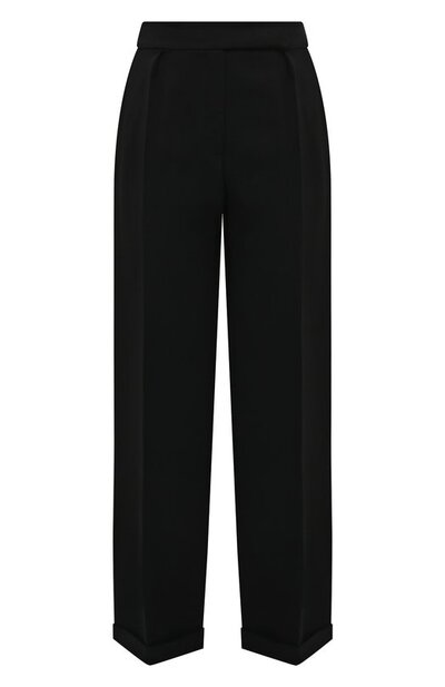Брюки с широкими отворотами и высокой линией талии выполнили из микса вискозы и ацетата. Модель с четырьмя прорезными карманами впишется и в повседневный, и в офисный гардероб.