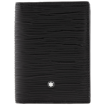 Montblanc Card Case. Meisterstuck series. SKU: 130929. Barcode: 4062037108070. Color: Black. Size: 3.15 x 0.39 x 4.13. Montblanc Meisterstuck 4810 Leather 4CC Card Holder. The card holder features a compartment for business cards, four credit card slots, and is crafted from printed bark tree motif leather, finished with the Montblanc emblem on the front.