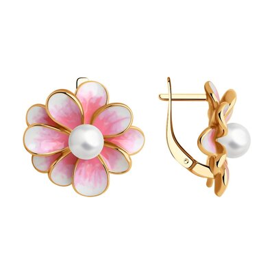 Серьги Sokolov из золочёного серебра с синтетическим жемчугом и эмалью 3469704559 (lpn27696374)