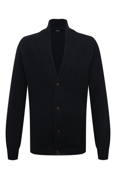 Кашемировый кардиган с шалевым воротником, рукавами реглан и боковыми карманами сможет заменить блейзер для офиса с нестрогим дресс-кодом. Связанная патентной резинкой модель застегивается пуговицами с крупной литерой К.