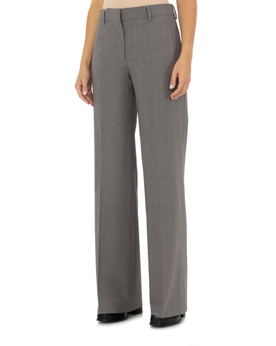 Широкие брюки прямого кроя с стрелками. Эластичный пояс с шлевками для ремня подчеркивает природные формы и позволяет чувствовать себя комфортно на протяжении всего дня. Модель застегивается на молнию и скрытый крючок, есть врезной карман сзади. Максимальный комфорт модели придает тонкая легкая шерсть, обладающая терморегулирующими свойствами.