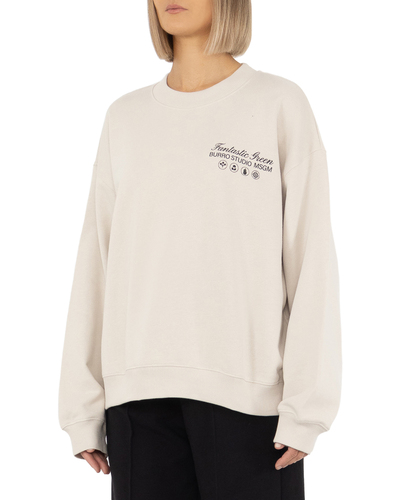 Свитшот оверсайз из мягкого трикотажа на основе органического хлопка украшен крупным принтом сзади и логотипом на груди.