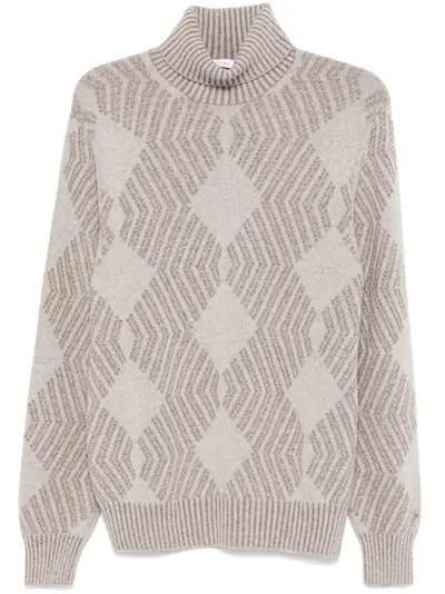 light grey/anthracite grey wool-cashmere blend fair isle intarsia knit roll neck long sleeves ribbed cuffs and hem