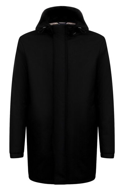 Парку со штормовой планкой, регулируемым капюшоном, двумя внешними и одним внутренним карманами сшили из шерстяного габардина с добавлением кашемира, который произвели на мануфактуре Loro Piana. Материал обработали по технологии Green Storm System®, сделав его дышащим и влагостойким.
