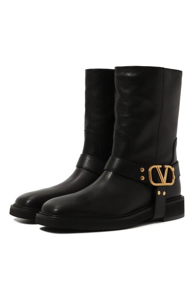 Ботинки VLogo Signature на широкой подошве изготовили из гладкой телячьей кожи. Модель украсили съемными переплетенными ремешками с пряжкой VLogo из латуни.