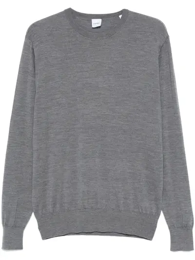 light grey virgin wool fine knit mélange effect ribbed crew neck long sleeves ribbed cuffs and hem