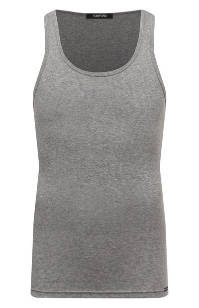 Облегающую майку сшили из рельефного трикотажа на основе модала и хлопка. Модель с широкими бретелями и глубокими проймами украсили миниатюрной брендированной нашивкой внизу.