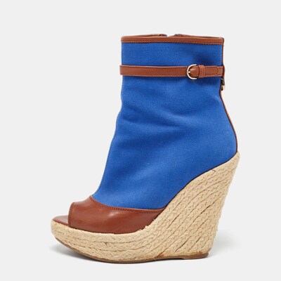 Sergio Rossi Blue/Brown Canvas and Leather Espadrille Wedge Boots Size 36 1047420 (голубой, lpn27734473)