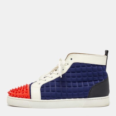 These Louis Flat sneakers from the House of Christian Louboutin will add a touch of elegance and class to your ensemble. They are creatively made from multicolored leather, patent leather, and neoprene on the exterior. They showcase Spike embellishments on the toes, lace ups, white toned hardware, and a high top design. Lastly, they are adorned with the iconic red soles.