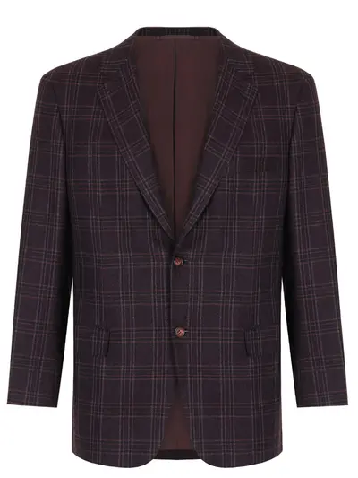 -Коричневый в клетку пиджак из шерсти от BRIONI.