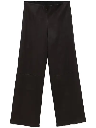 dark brown lambskin smooth grain elasticated waistband straight leg