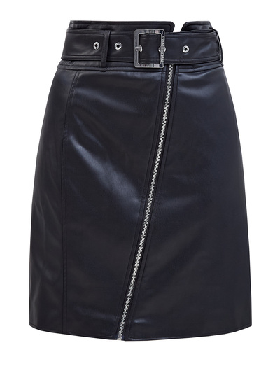 Karl Lagerfeld Юбка из экокожи с диагональной застежкой-молнией и поясом 253029 (чёрный, lpn27738684)