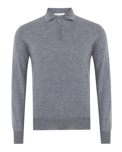Джемпер поло с длинными рукавами и отложным воротником застежка на молнию. Идеально подходит для деловых встреч и более неформальной обстановки. Модель из 100% шерсти комфортно сидит по фигуре, обеспечивая идеальный микроклимат.