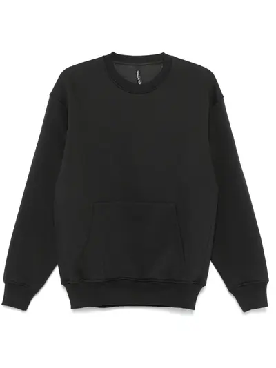 dark grey cotton jersey texture embroidered double bolts drop shoulder ribbed crew neck long sleeves front pouch pocket fleece lining ribbed cuffs and hem