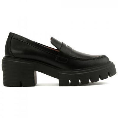 Лоферы из натуральной чёрной кожи Stuart Weitzman. Лоферы из гладкой чёрной кожи идеально поддержат городской стиль. Они имеют высокую 70-миллиметровую подошву с выступами, которая предлагает смелый новый взгляд на тренды. Их лаконичный дизайн позволяет носить их с чем угодно. Подкладка и стелька выполнены из натуральной кожи.
