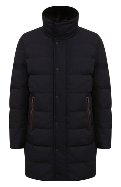 Стеганую куртку из полиэстера утеплили экологичным наполнителем Re-Goose Down из переработанного утиного и гусиного пуха. Модель со съемной ворсовой отделкой на воротнике дополнена двумя врезными карманами спереди и одним внутри. Пуховик застегивается молнией, прикрытой клапаном с кнопками.
