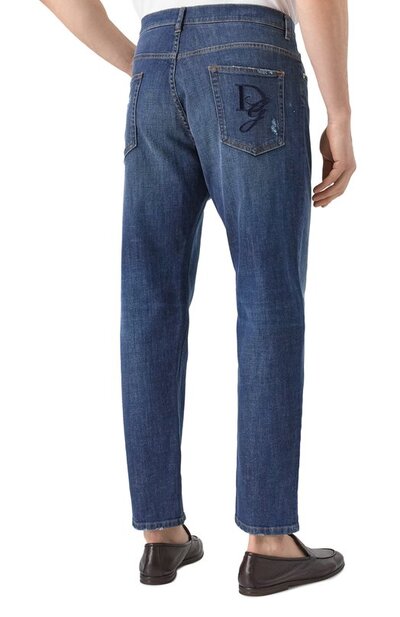 Джинсы кроя Loose fit украсили фирменной нашивкой на монетном и монограммой на заднем карманах. Брюки из стрейчевого денима постирали с камнями, чтобы придать состаренный вид.