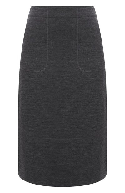 Миди-юбка с двумя крупными карманами, подчеркнутыми рельефной строчкой, поддержит casual-образы любой палитры. Для пошива модели, застегивающейся на боковую молнию, использовали меланжевый трикотаж терри из шерсти, усиленной полиэстером.