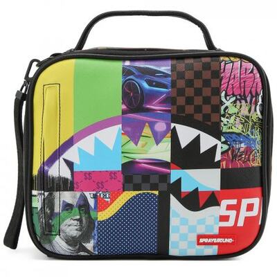 Сумка из эко кожи от SPRAYGROUND. В этой мини-сумке удобно хранить все необходимые мелочи и косметику в путешествии или дома. Единственное отделение закрывается на молнию, внутри сетчатый внутренний карман и подкладка из полиэстера. Сумку можно носить за боковую ручку или используя ремень-петлю на карабине.