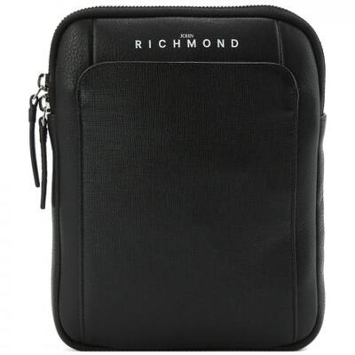 Сумка на плечо из натуральной кожи John Richmond. Универсальная сумка в чёрном цвете подойдет к любому гардеробу. В комплекте ремень на плечо, который можно отрегулировать по длине. Сумка закрывается на молнию с двойным бегунком, внутри текстильная подкладка и карман на молнии. Аксессуар украшает фирменный логотип бренда.