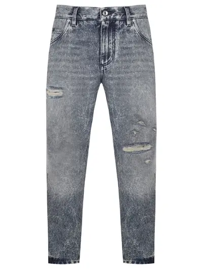 -Джинсы из вареного хлопка в темно-голубом оттенке от DOLCE&GABBANA.