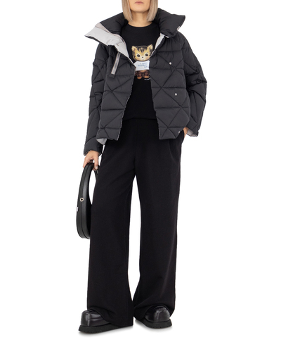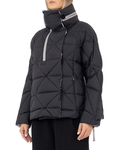 Оригинальность этой модели не оставит Вас без внимания. Стеганый пуховик мягкого кроя выделяется объемным воротником, регулируемый молнией, а также вшитыми имиджевыми лентами, персонализирующими дизайн. Для удобства рук и размещения важных мелочей предусмотрены карманы по бокам на скрытой молнии. О тепле заботится наполнитель из пуха и пера.