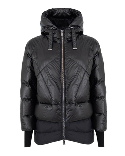 Стеганный пуховик оверсайз. Застежка молния, на капюшоне с кулиской. Модель из матового полиэстера, утеплили легким пуховым наполнителем. Манжеты с отверстием для пальца защитит от холодов.