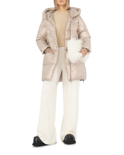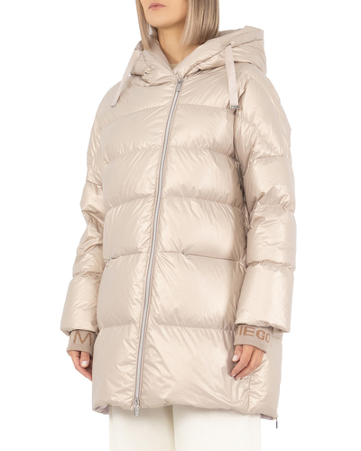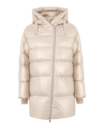 Удлиненный стеганый пуховик из новой коллекции Diego M, надежно укроет от осадков и низких температур. Эту модель утеплили пуховым наполнителем, дополнили капюшоном на кулиске и высокими, плотно облегающими манжетами, что препятствует проникновению холода внутрь. Куртка застегивается на встречную чуть асимметричную молнию.