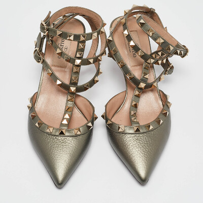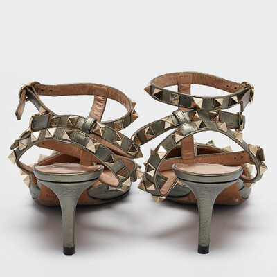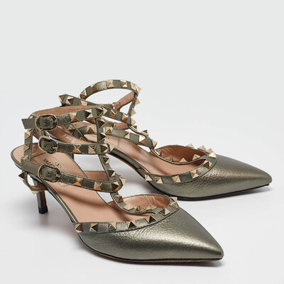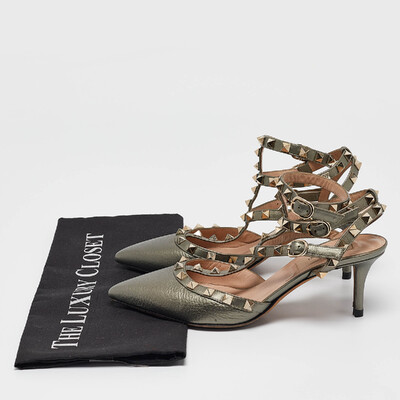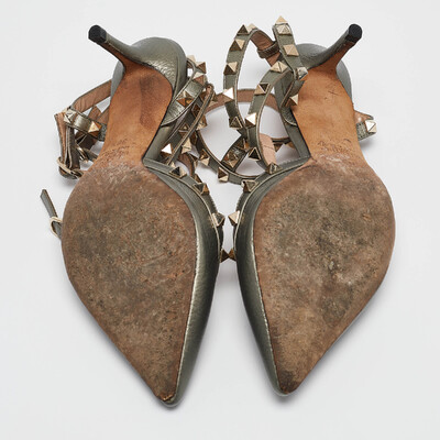 Valentino Grey Leather Rockstud Ankle Strap Pumps Size 36.5 1053107 (lpn27810952)