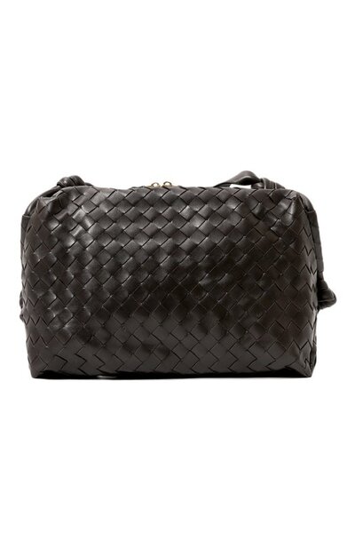 Вместительную сумку Loop сплели в технике intrecciato из телячьей кожи. Аксессуар дополнили плечевым ремнем, украшенным четырьмя узлами. Внутри — карман на молнии.