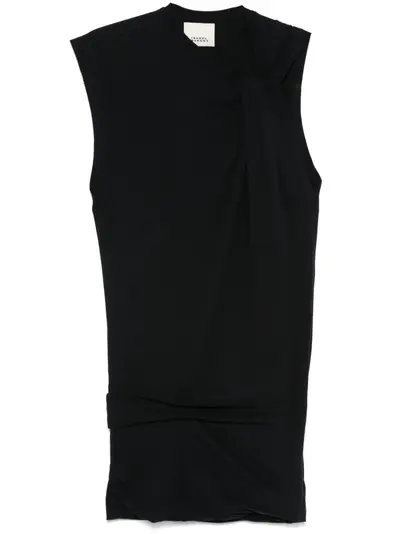 black organic cotton jersey texture twist detailing draped detailing asymmetric neck sleeveless embroidered logo to the rear unlined asymmetric hem thigh-length