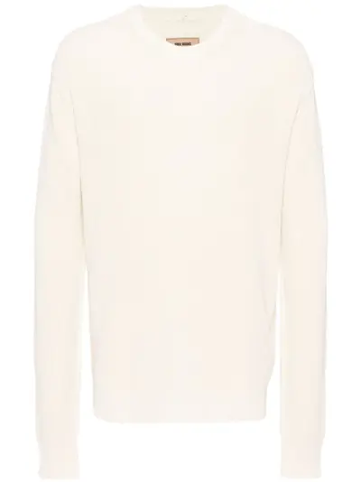 off-white silk knitted construction crew neck long sleeves drop shoulder ribbed cuffs and hem