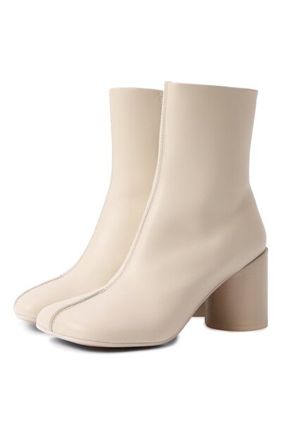 Ботильоны Stitch-out с рельефным швом на анатомическом мысе сшили из гладкой телячьей кожи. Модель на цилиндрическом каблуке средней высоты дополнили боковой молнией. На голенище сзади – фирменная белая строчка.