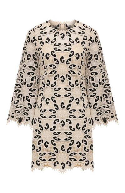 Мини-платье Ottie с фестонами на манжетах и подоле выполнили из ажурного хлопкового кружева. Модель с рукавами 3/4 и непросвечивающим подкладом застегивается потайной молнией на спинке.