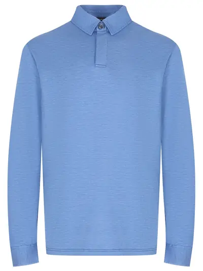 -Голубое поло из смесового шелка с добавлением хлопка от KITON.