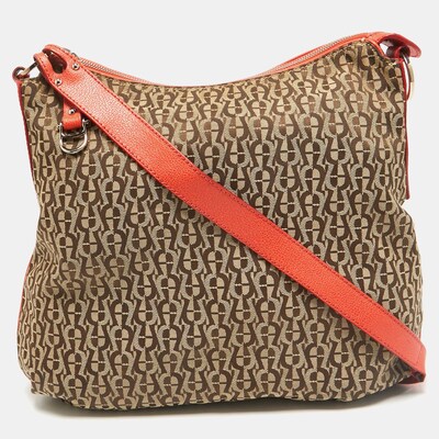 Aigner Beige/Orange Monogram Canvas and Leather Zip Crossbody Bag 1058736 (бежевый, lpn27880629)