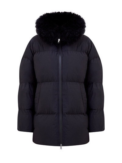 Объемный пуховик в оттенке ночного неба от Yves Salomon выполнен из водонепроницаемого нейлона с матовым финишем. Наполнитель из пуха подчеркивает объемный крой и делает модель идеальной для составления зимних образов, а ворот с окантовкой из меха ягненка дополнительно защищает лицо от ветра. Детали: прорезные карманы, застежка на усиленную молнию.