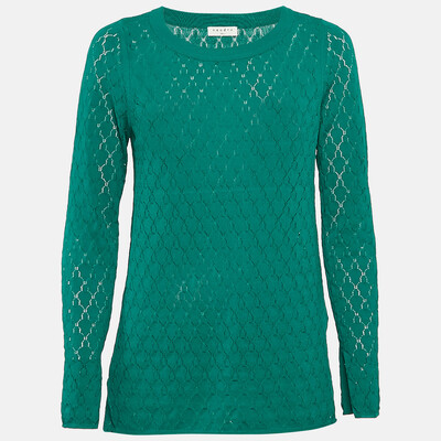 Sandro Green Pointelle Stretch Knit Anabelle Jumper L 1059646 (зелёный, lpn27887405)