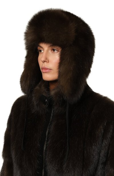 Коричневая шапка-ушанка сшита мастерами марки вручную из драгоценного искрящегося собольего меха с характерной естественной проседью. Объемный, но легкий аксессуар с запатентованной технологией Furland Climate создает комфортный микроклимат, а фирменная внутренняя отделка не электризует волосы и сохраняет прическу.