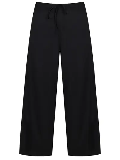 -Черные брюки из мягкого хлопка от ZIMMERLI. -Модель свободного прямого кроя с высокой посадкой и эластичным поясом на кулиске подойдет для комфортного домашнего отдыха, не будет сковывать движения и позволит телу дышать.