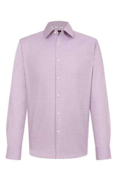 Рубашку кроя Regular fit сшили из слегка эластичной хлопковой ткани с микроузором. Изделие с воротником кент обработали по технологии easy-iron, поэтому модель не требует тщательного отутюживания после стирки.
