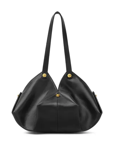 black calf leather Medusa Head motif magnetic fastening two flat shoulder straps main compartment internal logo stamp