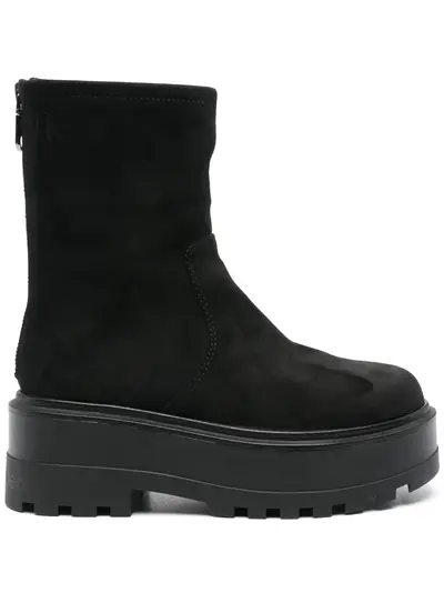 black recycled polyester blend faux suede rear zip fastening 60mm flatform sole ankle-length debossed logo to the side rubber sole